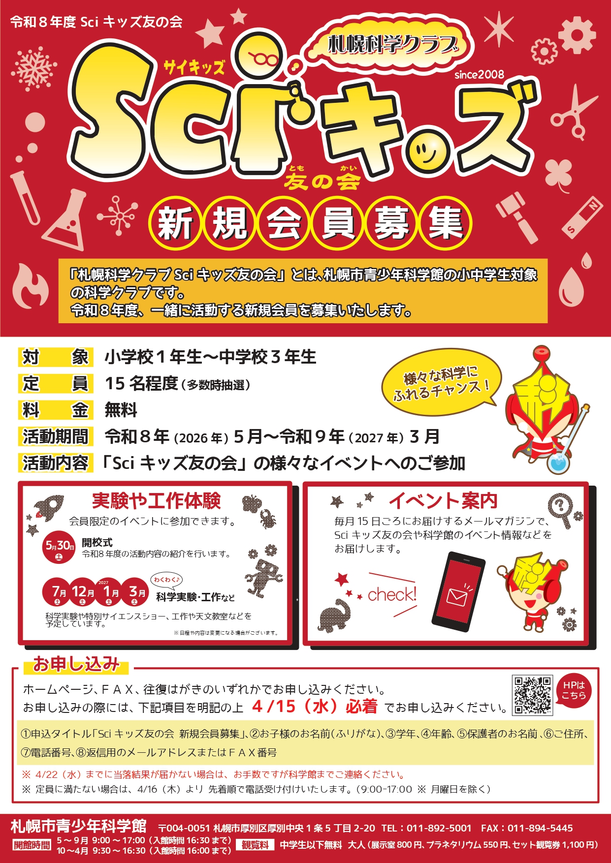 令和8年度Sciキッズ友の会新規会員募集