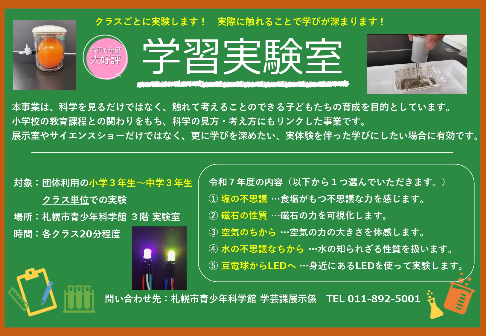 札幌市内の団体予約で来館する小学生向けに実施している事業です。