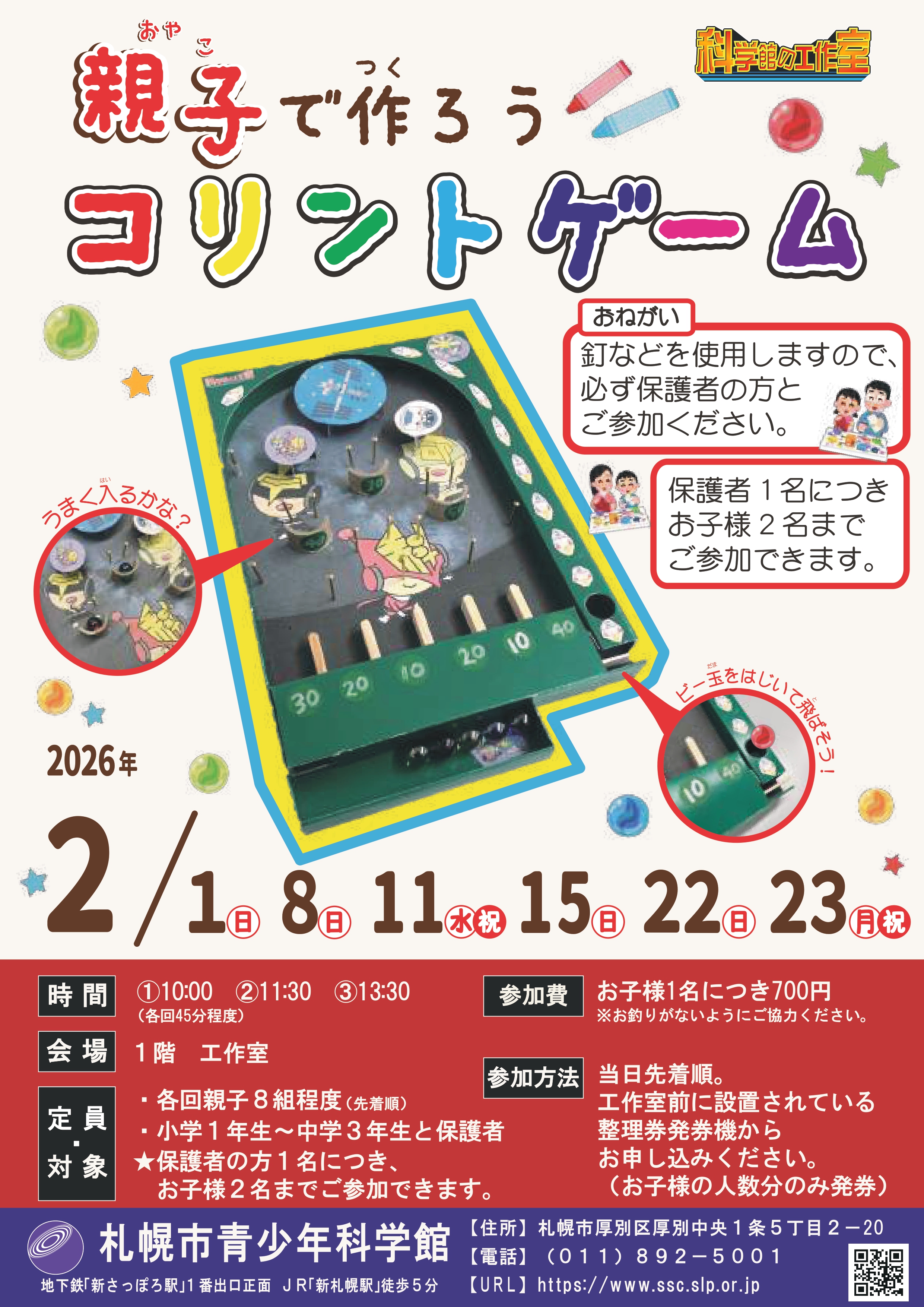 【2月】科学館の工作室「親子で作ろうコリントゲーム」