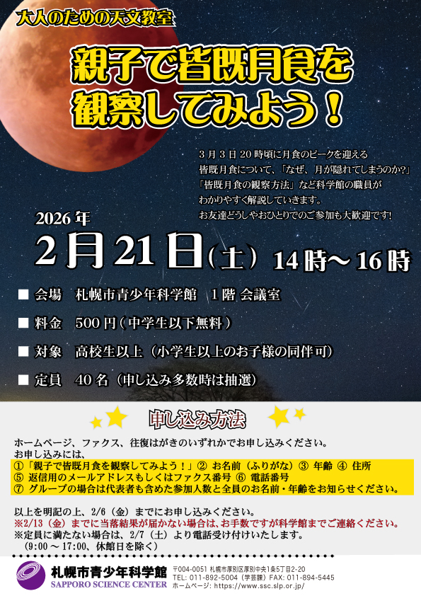 大人のための天文教室 ~親子で皆既月食を観察してみよう!~