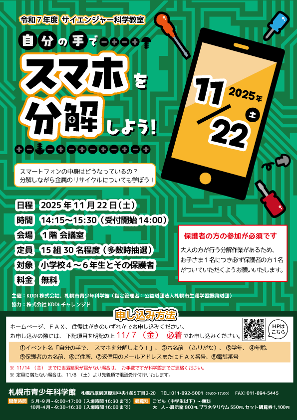 【主催】KDDI株式会社、札幌市青少年科学館 指定管理者 (公財)札幌市生涯学習振興財団