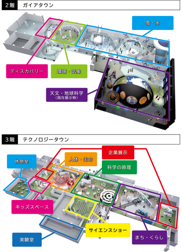 2階、3階にある展示室は、大きくこのようなエリア分けになる予定です。
